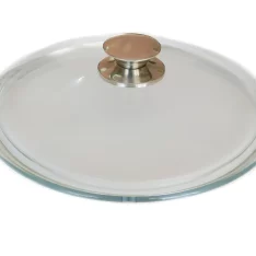Наши крышки изготавливаются из боросиликатного стекла, благодаря чему способны выдерживать разные перепады температур, механические повреждения, а также материал не впитывает посторонние запахи. В данной модели крышки присутствует металлическая ручка, которая крепко держится на поверхности крышки и не нагревается при готовке еды.
